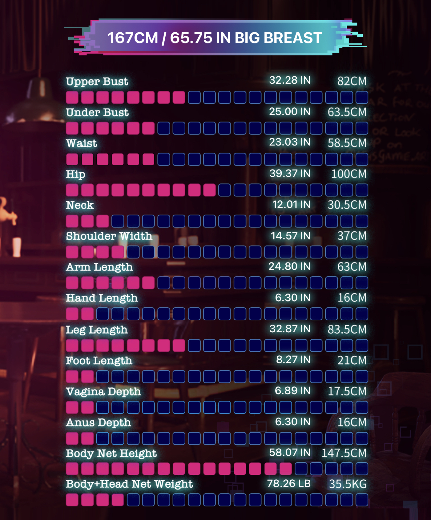 Almost no difference from the real body structure, such as clavicle, supersoft breasts with gel, smooth waistline, shoulder blades, and back line. clear texture of the knees and ankles, pulling the game character from the screen directly into the real world of three-dimensional effect, as vivid as life.